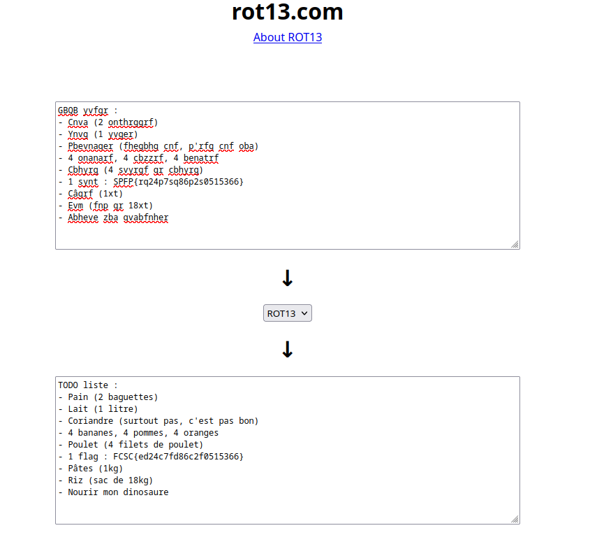 Dans ce challenge, il faut décoder ce message encodé en ROT13.